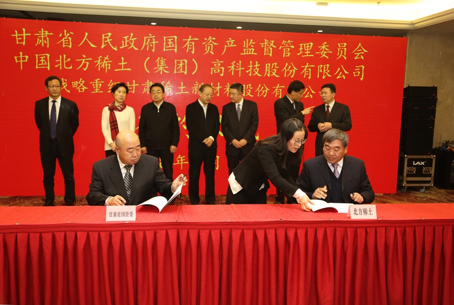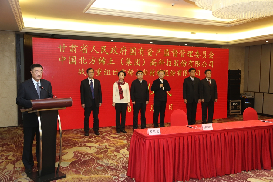 2018年 1月22日下午,公司与北方稀土在兰州签署战略重组协议,随着重组协议、股权转让等一系列协议的签署,在资本层面建立起了更加稳固的关系,实现了强强联合。这必将对我国稀土产业优化资源配置,提高产业集中度,实现更高质量发展产生积极深远的影响。