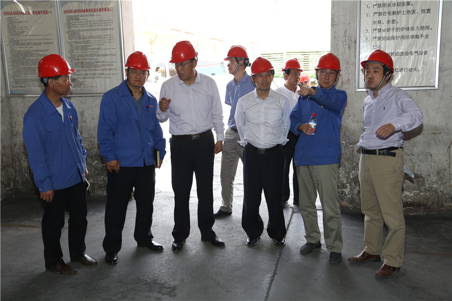 6月6日上午,国家淘汰落后产能督导检查组组长吕桂新带领督导检查组来公司检查工作,白银市副市长贾汝昌、省工信委副主任高东生等相关领导陪同检查。 公司党委书记、董事长薛怀义、党委副书记、总经理瞿业栋、副总经理李治德、魏其东等陪同吕桂新一行实地前往公司烧碱厂、201车间、204车间、试剂车间、金属公司、贮氢磁材车间、稀土抛光粉车间,现场查看了公司生产线建设情况及生产工艺流程。并就公司产业发展情况进行了交流、指导。