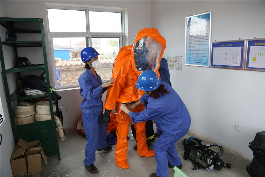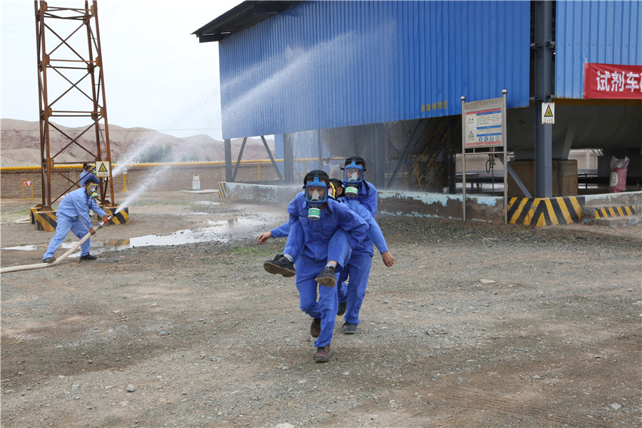 6月28日上午,试剂车间联合公司安全环保部、武装保卫部、白银市第一人民医院稀土分院、生产运作部、机动能源部、仓储部、汽车队开展液氨泄漏应急救援演练,进一步提高企业安全生产意识,加强员工对突发事故的快速反应能力、应急处理能力和协调作战能力,提高车间应急救援水平。