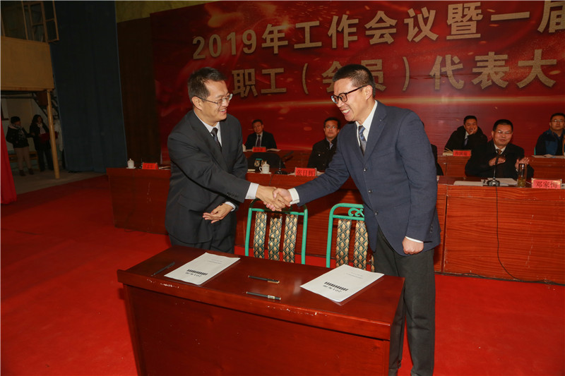 会上,瞿业栋与生产单位代表签订《2019年经营业绩考核责任书》,薛怀义与基层党支部代表签订《2019年党建工作目标责任书》,邓家恂与基层党支部代表签订《2019年党风廉政建设主体责任书》。