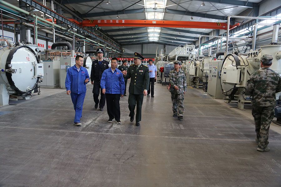 随后,调研组一行对公司武装部连部阵地建设和三门“双三七”高炮进行实地调研,并参观了部分生产车间。