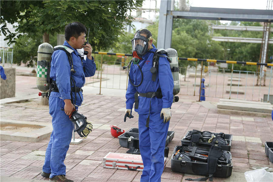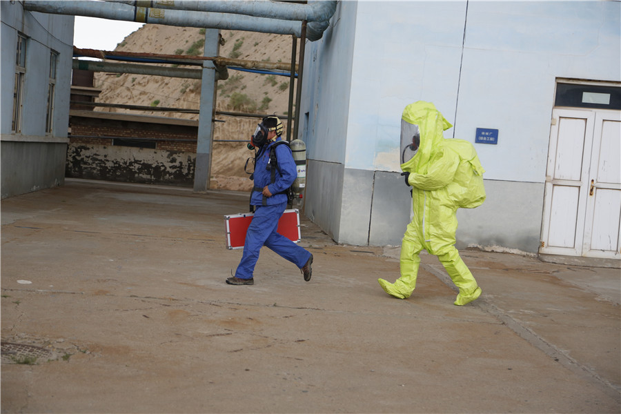 按照公司《关于开展2019年“安全生产月”、“安全生产陇原行”活动实施方案》的通知要求,2019年6月25日下午,烧碱厂联合安全生产部、武装保卫部、机动能源部在液化工序组织开展了液氯贮槽液面管破裂液氯泄漏应急救援演练。公司副总经理韩满旋及相关部室、各车间安全管理人员现场观摩。
