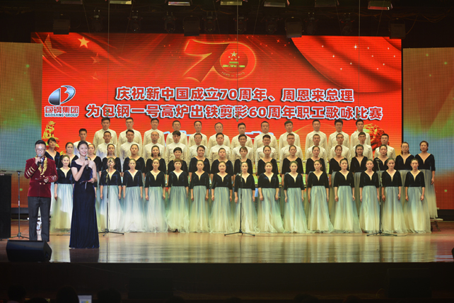 9月23日至24日, 包钢集团公司庆祝新中国成立70周年、周恩来总理为包钢一号高炉出铁剪彩60周年职工歌咏比赛在包钢文化宫隆重举行。公司精心挑选66人组成合唱团前往包头参加比赛。