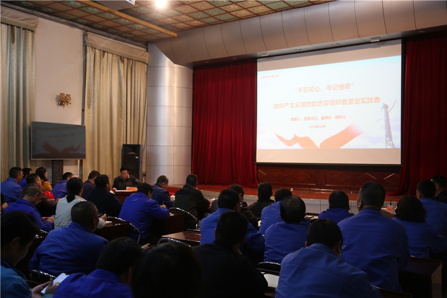 10月22日晚,公司在文化宫会议室举行了“党委书记讲党课”活动,公司党委书记、董事长薛怀义作了题为《不忘初心、牢记使命 做共产主义理想的忠实信仰者坚定实践者》的专题党课,帮助广大党员进一步搞清“从哪里来”的基因密码,把准“走向何方”的精神路标。