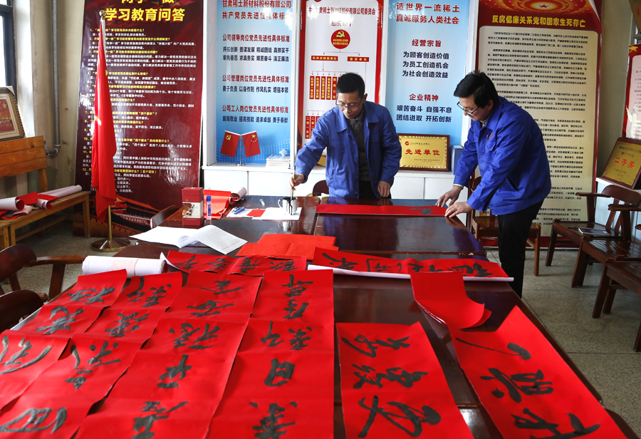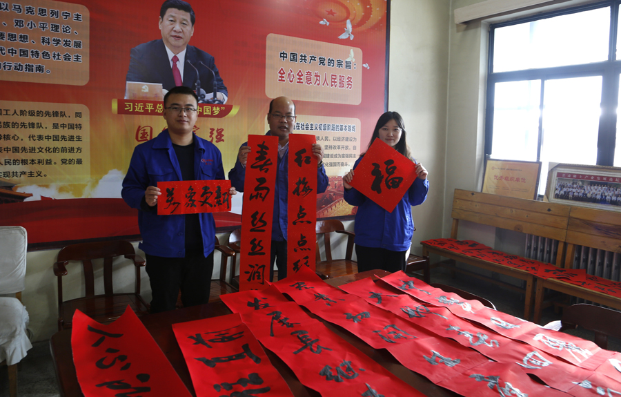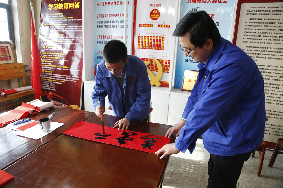 一副副红红火火的春联,一张张饱含深情的“福”字,传递出了浓浓的年味。连日来,公司工会组织书法爱好者在办公楼挥毫泼墨,用精心书写的春联,为一线职工送去新春祝福。