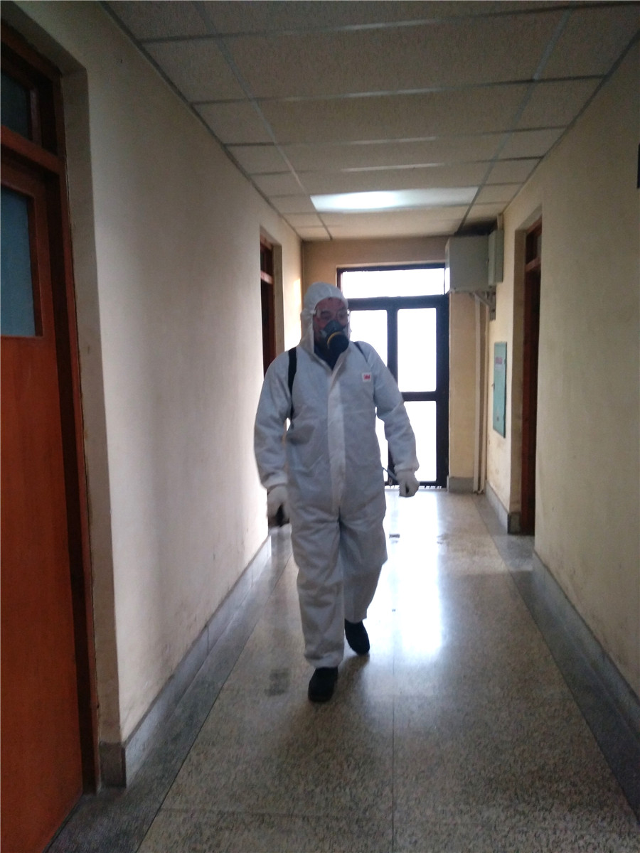 对办公区域、职工浴室进行统一消毒