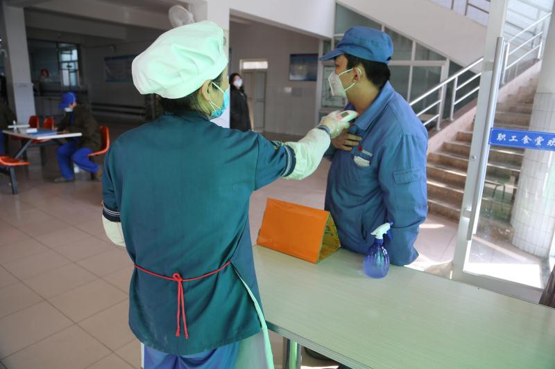 职工食堂作为对全体职工提供用餐服务的单位,因为特殊的劳动性质和工作使命,就决定了要不容一丝差错打好疫情防控阻击战。为积极应对此次疫情,全力确保每名职工用餐安全,职工食堂进一步加强管理,打餐时一律不提供一次性餐具和共用餐具,安排专人对进入食堂的人员进行体温检测和记录,通过各单位集中打餐领回去分散用餐的形式最大限度保障用餐安全。同时,每天除了做好室内通风、卫生清理及房前屋后消毒工作外,在食堂打餐高峰期,各基层单位工会主席在食堂轮岗值班,监督维持秩序,并为职工提供更多服务。