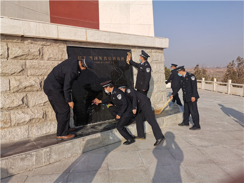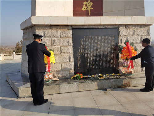 不朽功勋彪炳史册,红色记忆永不磨灭。为继承和发扬革命先烈光荣传统,4月4日上午,武装保卫党支部在吴家川西征公园开展“重温历史,缅怀先烈”主题党日活动,追勉忠魂、共寄哀思,激发党员干部爱国情怀,勇挑重担,更好传承红色基因。党员们整齐肃立在纪念碑前,为烈士们献上花篮,随后,全体党员举起右拳,重温入党誓词,庄严宣誓。最后,全体党员拿起笤帚、扫把清扫陵园卫生,擦拭墓碑灰尘,把纪念碑周围打扫的干干净净。