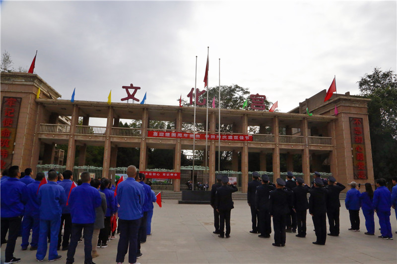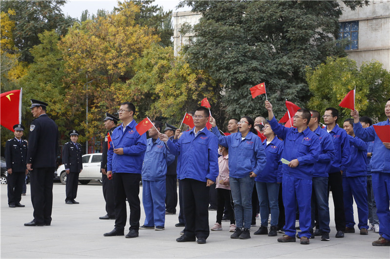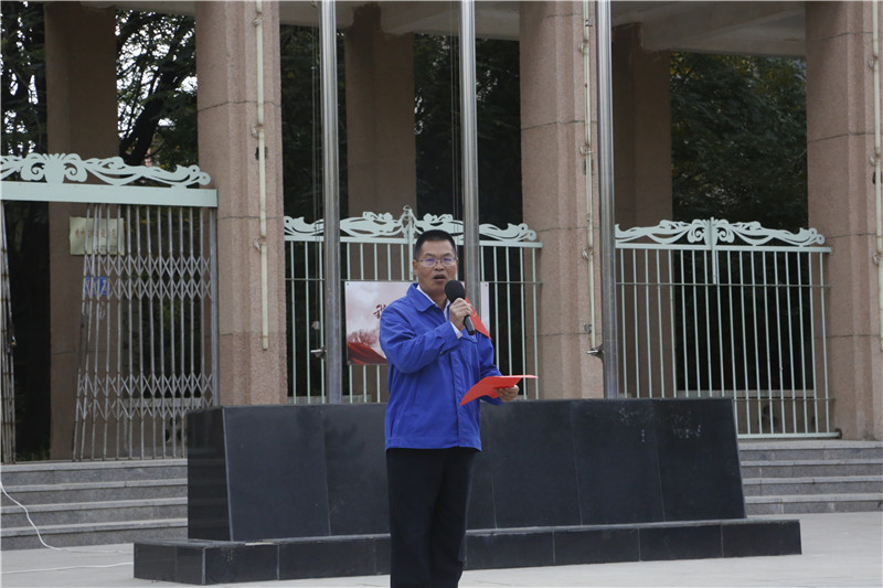 中秋国庆喜相逢,举国欢腾万家圆!10月1日上午,公司各基层党支部在文化宫广场举行庄严的升国旗仪式暨“不忘初心,筑梦前行”主题党日活动,与海内外亿万中华儿女一起共庆新中国71岁华诞,向伟大的祖国献上全体甘肃稀土人的真挚祝福。公司领导瞿业栋、邓家恂、韩俊国,机关第一党支部、机关第二党支部、机关第四党支部、武装保卫部党支部、计控信息党支部、机修安装车间党支部等支部部分党员及特邀学生代表参加活动。