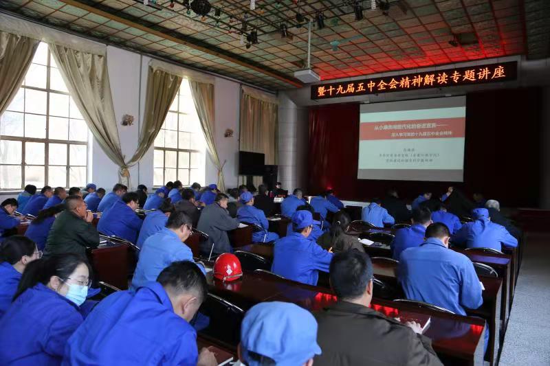 11月25日下午,公司在文化宫会议室召开党委理论学习中心组学习(扩大)会议暨十九届五中全会精神解读专题讲座。公司党委书记、董事长刘培勋及相关领导班子成员、副科级以上干部、基层党务工作者及各车间团支部书记共100余人参加讲座。