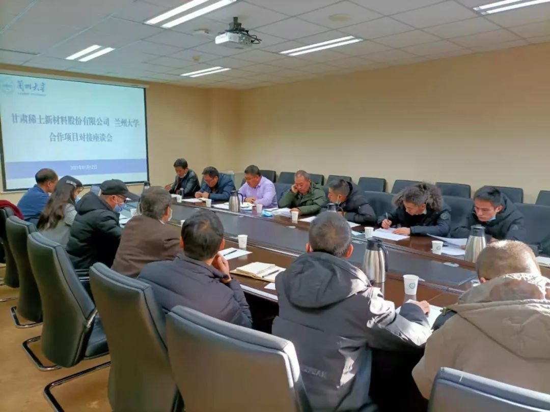 座谈会上,与会公司领导分别介绍了无水氯化稀土的制备、萃取稀释剂标准的制定、抛光粉性能的改善、高盐废水的脱盐以及萃取含油废水的除油等拟与兰州大学合作项目的基本情况。兰州大学相关项目负责人介绍了前期的准备工作以及项目方案,经过充分的对接洽谈,双方就进一步落实项目合作事宜,推进项目进度,签订技术开发合同等事项达成了一致意见。