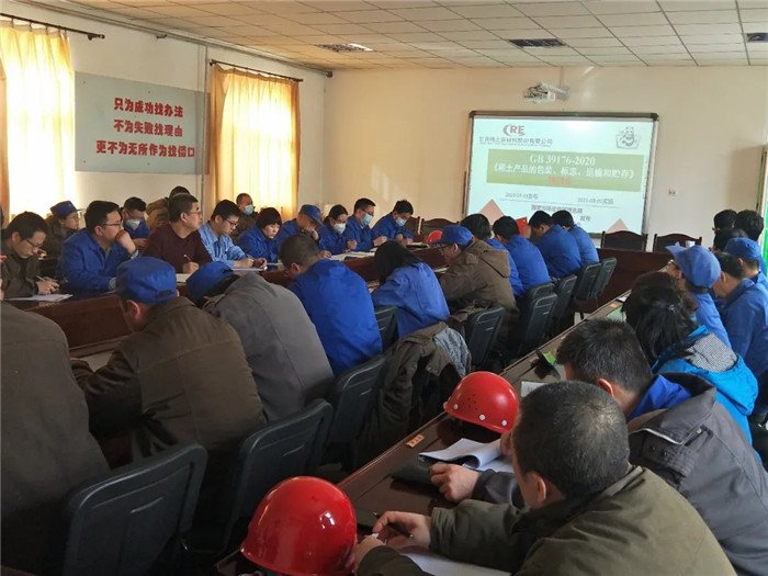 为贯彻执行国家强制标准《稀土产品的包装、标志、运输和贮存》(GB39176—2020)相关要求,不断提升公司稀土产品包装运输过程的环境保护和职业健康安全,确保稀土产品来源的合规性,1月29日,公司技术质量部在调度室会议室组织各单位主要领导、技术人员、相关业务处置人员就《稀土产品的包装、标志、运输和贮存》进行宣贯和学习。