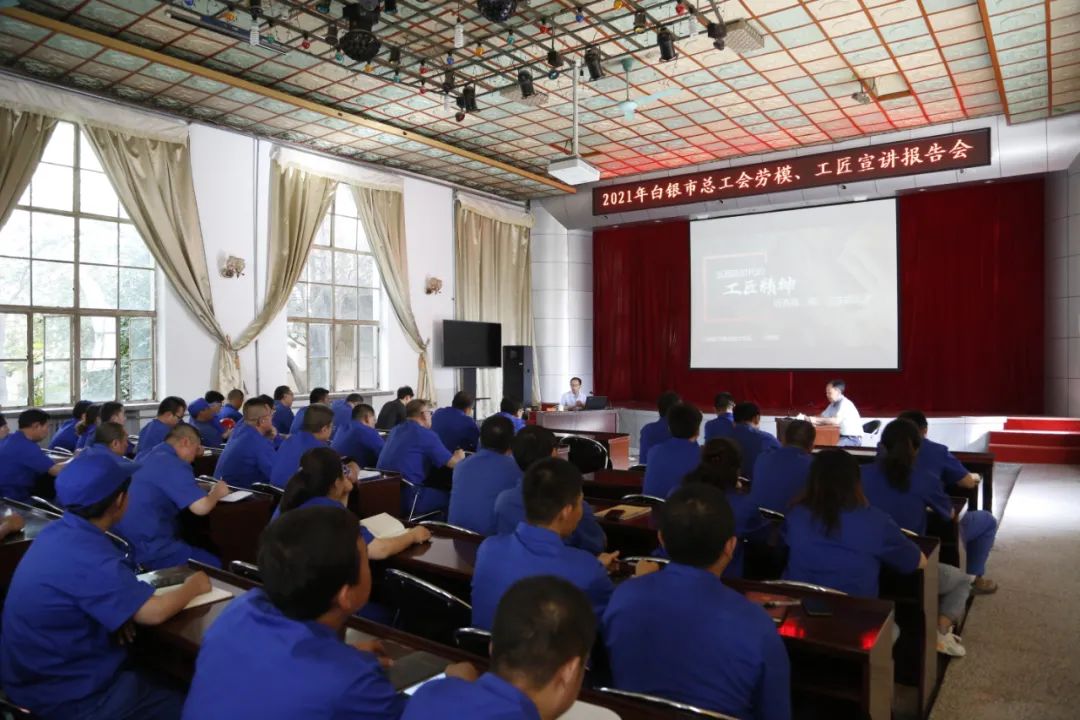为大力弘扬劳模精神、劳动精神和工匠精神,6月29日上午,白银市总工会来公司开展主题为“中国梦·劳动美——建功十四五·奋进新征程”的劳模、工匠进企业宣讲活动,旨在深入学习贯彻落实习近平总书记在全国劳模和先进工作者表彰大会上的重要讲话精神,进一步宣传模范人物的先进事迹,营造“学习劳模工匠、崇尚劳模工匠、争当劳模工匠”的浓厚氛围。白银市总工会党组成员、副主席展之荣主持宣讲报告会。