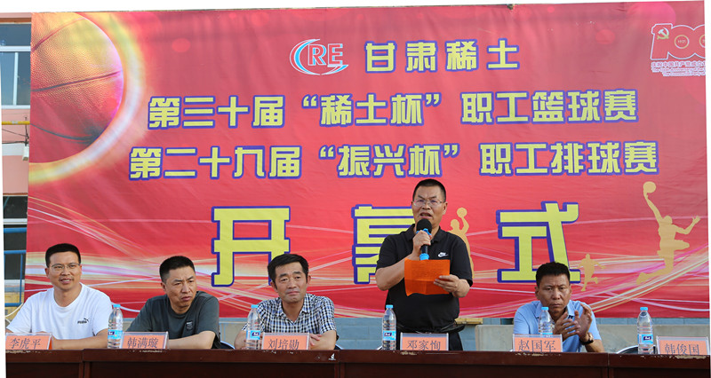 开幕式最后,公司党委书记、董事长刘培勋宣布公司第三十届“稀土杯”篮球赛、第二十九届“振兴杯”排球赛正式开始,公司党委委员、副总经理韩满璇为首场比赛开球。