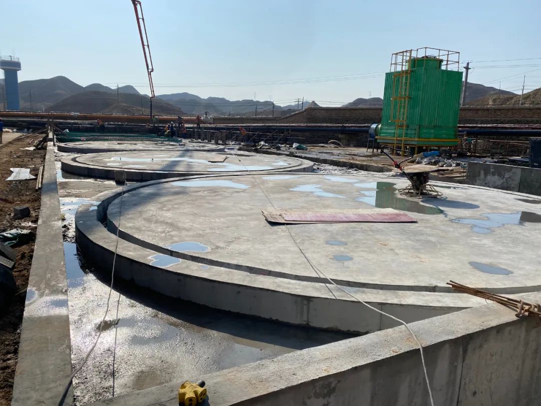 ☞已完成水池基底钢筋模板安装,正在进行止水带焊接和池壁钢筋绑扎。