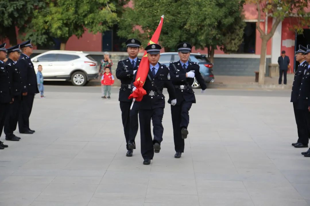 由武装保卫职工组成的3名护旗手迈着铿锵有力的步伐护送国旗进场。随后,雄壮的《义勇军进行曲》缓缓响起,升旗手振臂将国旗展开,五星红旗顺着朝阳的方向徐徐升起,在场全体同志肃穆而立致以崇敬的注目礼,送上了对祖国最美好的祝福。