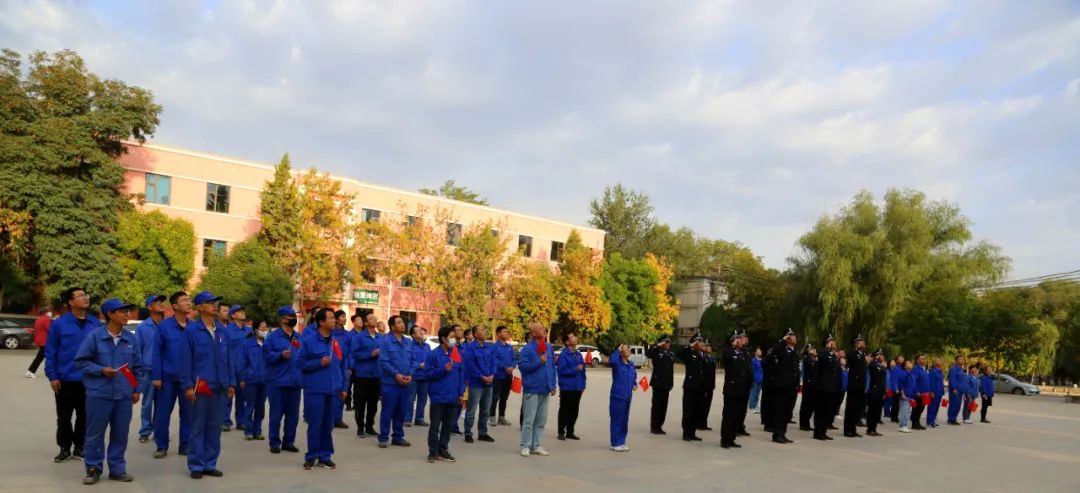 秋风猎国旗,晨曦迎华诞。为庆祝中华人民共和国成立72周年,扎实推进党史学习教育走深走实,进一步弘扬爱国主义精神,认清职责使命,强化爱国意识。10月1日上午8时,公司组织各单位、部门主要负责人及党员代表共计100人在文化宫广场举行“迎国庆、升国旗”仪式。