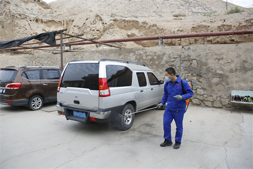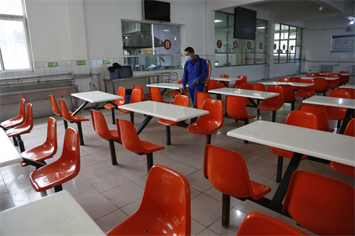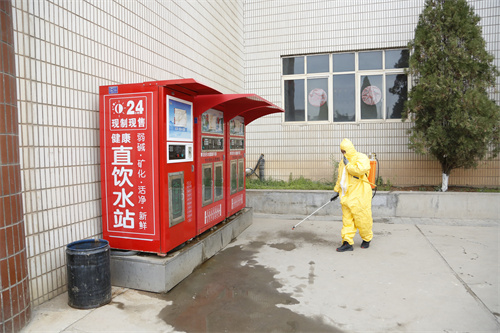 职工食堂工作人员对食堂内外、车辆、饮水站进行消毒
