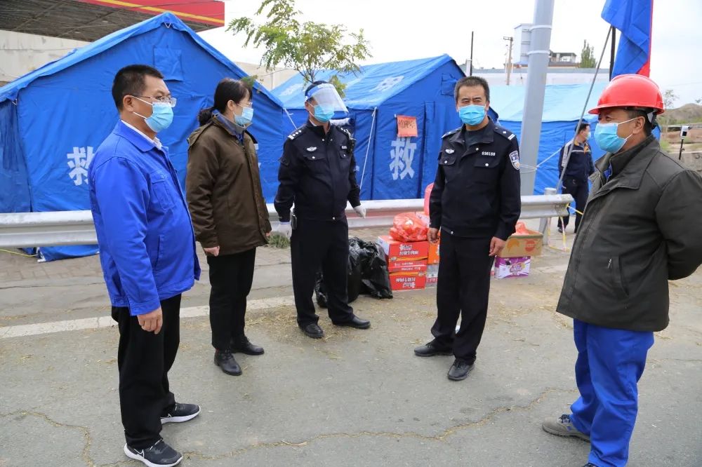 10月26日下午,公司党委副书记、纪委书记、工会主席、疫情防控工作领导小组副组长邓家恂带领公司疫情防控领导小组成员到公司各厂区门岗、稀土家园检测点、靖远县吴家川高速防疫点看望慰问坚守疫情防控一线的工作人员,为他们送去口罩、方便面、矿泉水、消毒液等物品。