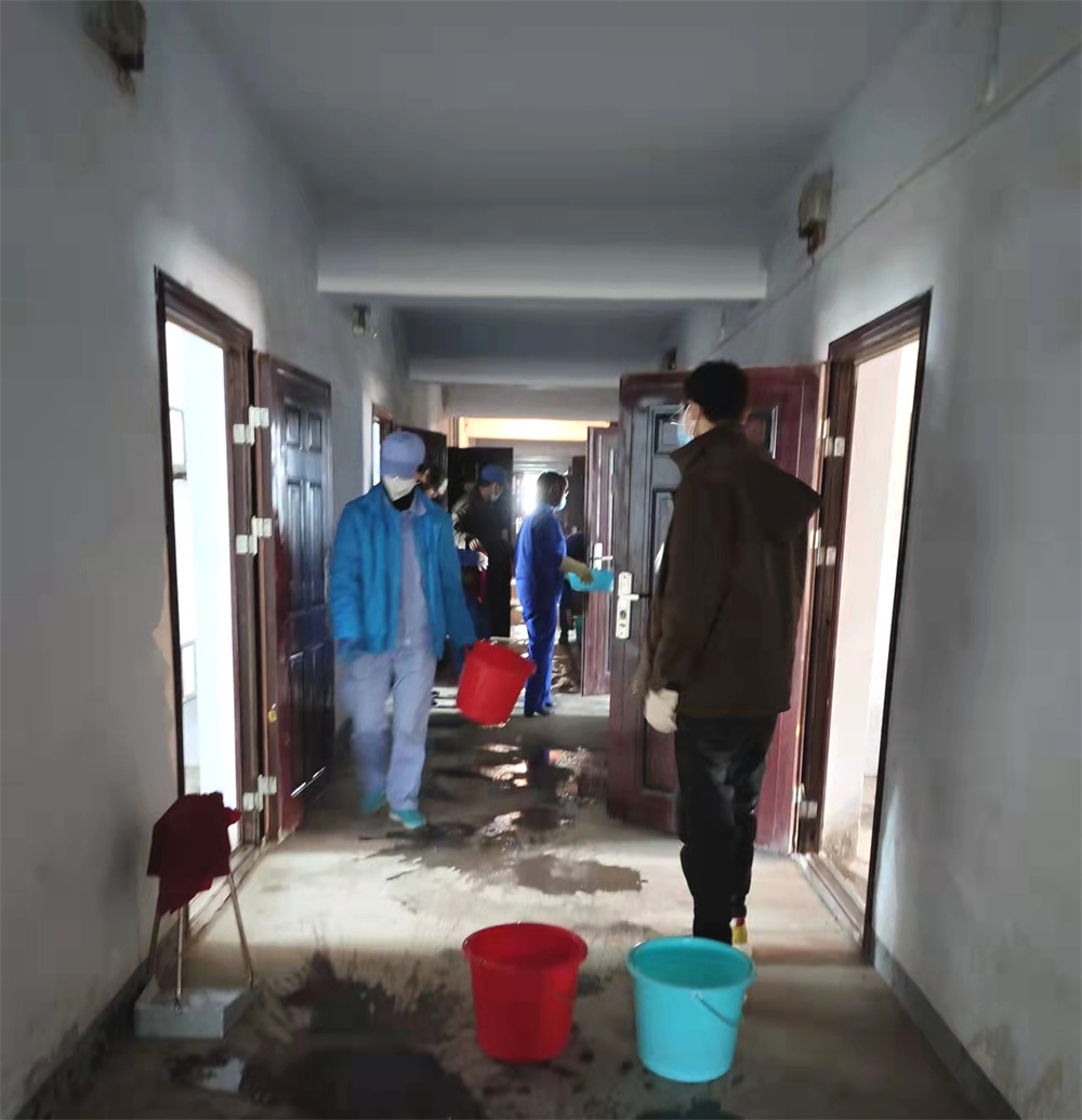 党员、团员接到工作任务后,主动靠前,积极行动,踊跃参与。志愿服务队员们分工配合,你扫地、我拎水、他拖地,认真清理每一个卫生死角,仔细清扫每一块地面。通过大家的辛勤劳动,临时集中隔离点任务区域内的卫生干干净净、整洁有序、焕然一新,为后期集中隔离点的建设打牢了坚实基础。