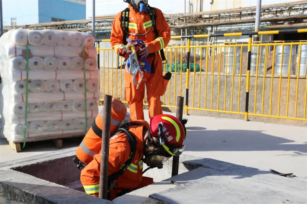 11月10日下午,武装保卫部联合201车间开展受限空间专项应急演练,模拟4000立方水浸液槽受限空间作业事故,启动公司应急响应机制,对受困人员进行施救。