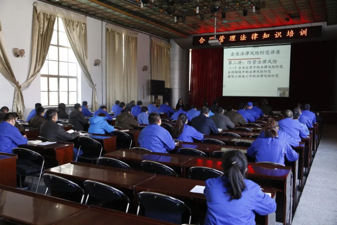 为切实提高企业管理人员学法用法知识水平,有效防范公司生产经营中的法律风险。11月26日下午,在认真落实疫情防控措施的前提下,公司以视频连线方式分别在文化宫会议室、高新区会议室两个会场开展合同管理专题培训。公司在家领导班子成员、副科级以上中层干部、关键岗位人员共100余人参加培训。
