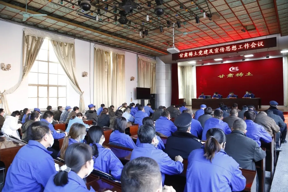 公司党委副书记、总经理周晓君主持会议并要求,各单位、部门一定要深入学习,深刻领会,进一步细化、量化、实化目标任务,落细、落小、落实工作措施,不断推动公司高质量发展再上新台阶。会后,各单位、部门要深刻学习、领会两位领导的讲话精神,组织广大党员干部认真学习,贯彻落实,以高度的政治责任感和历史使命感切实履行好我们的岗位职责,举全体之力,集全体之智,全面完成今年的党建重点工作和思想宣传工作任务,为甘肃稀土加快高质量发展提供强有力的精神动力和思想保证。