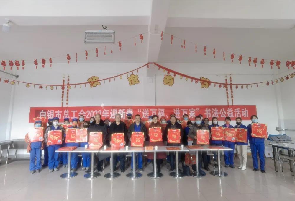 春联迎新岁,墨香暖人心。1月20日下午,白银市总工会在公司职工食堂开展2022年迎新春“送万福、进万家”书法公益活动。白银市总工会党组成员、经费审查委员会主任魏春霞,公司党委委员,副总经理李虎平出席活动。
