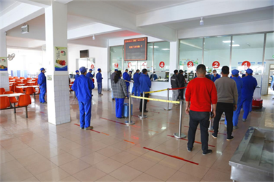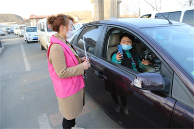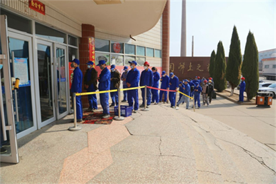 厂区门口对上班职工、外来施工队、外来运输物资人员、查验健康码行程码、体温检测