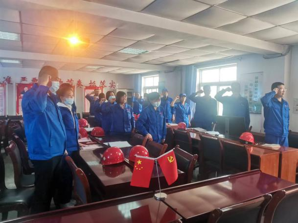 活动开展期间,共建双方党支部全体党员面对鲜红党旗,集体重温入党誓词。