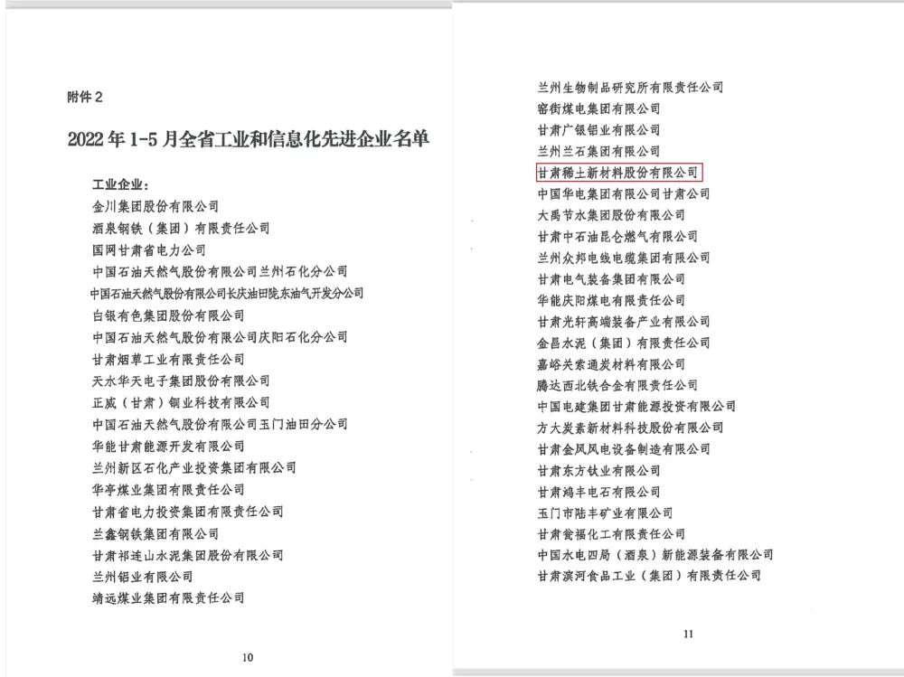 6月7日,根据《甘肃省人民政府关于表扬2021年和2022年1-5月全省工业和信息化先进企业的通报》(甘政发电〔2022〕3号),为表扬先进、树立典型,甘肃省人民政府对2021年以来全省工业经济作出突出贡献的156户企业进行通报表扬,尊龙手机版官网股份有限公司被评为2021年和2022年1-5月全省工业先进企业。