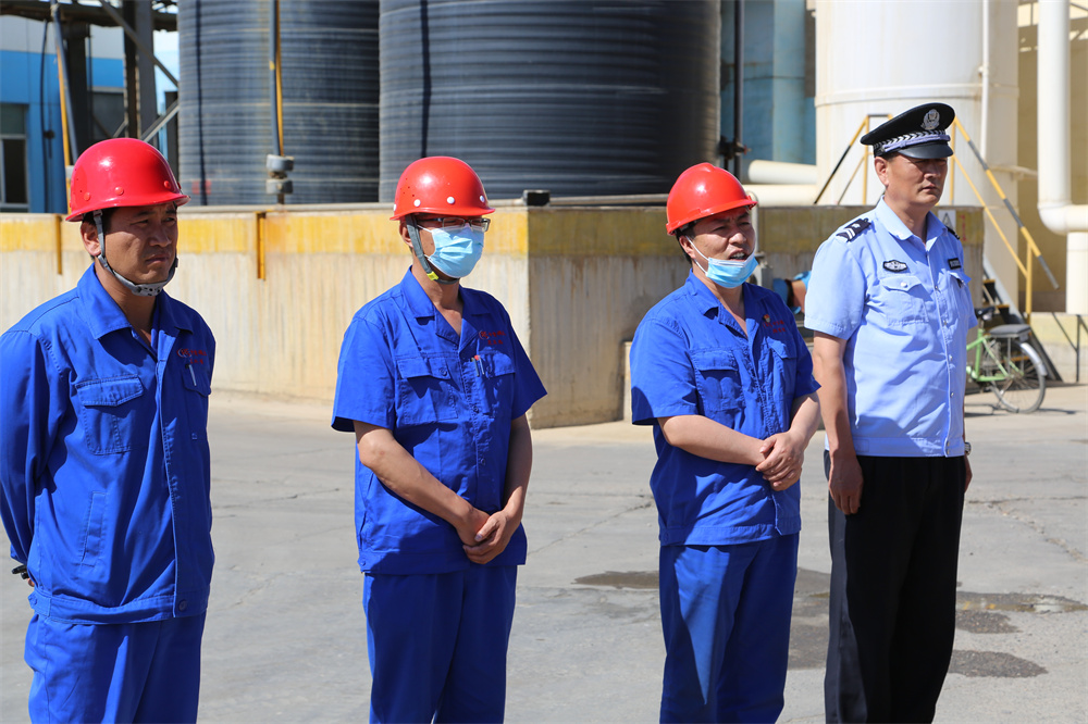 此次演练由201车间、安全生产部、武装保卫部、白银第一人民医院稀土分院联合开展,现场模拟液氨站2#贮槽液相出口第二道阀门进料侧法兰出现大量泄漏,液氨贮罐区可燃气体报警,喷淋系统自动启动。岗位操作人员第一时间发现险情,在穿戴好防冻服、空气呼吸器后,进入现场确认灾情,随后向车间报警,启动车间应急预案响应程序。车间应急救援小组到达现场后,立即采取先期措施,并向公司安全生产部、武装保卫部、白银第一人民医院稀土分院请求支援。公司武装保卫部到达现场后对事故区域进行水雾喷淋,稀释“氨气”浓度,消防人员进入事故现场,关闭液氨储罐底部阀门,开展堵漏工作。稀土分院将抢险中因体力不支而受伤的“伤员”送往医院进行救治,10时许,紧急状态结束,事故险情排除。演练过程中,各部门配合默契、分工明确,指挥协同密切,救援人员反应迅速、有条不紊,达到了预期效果。