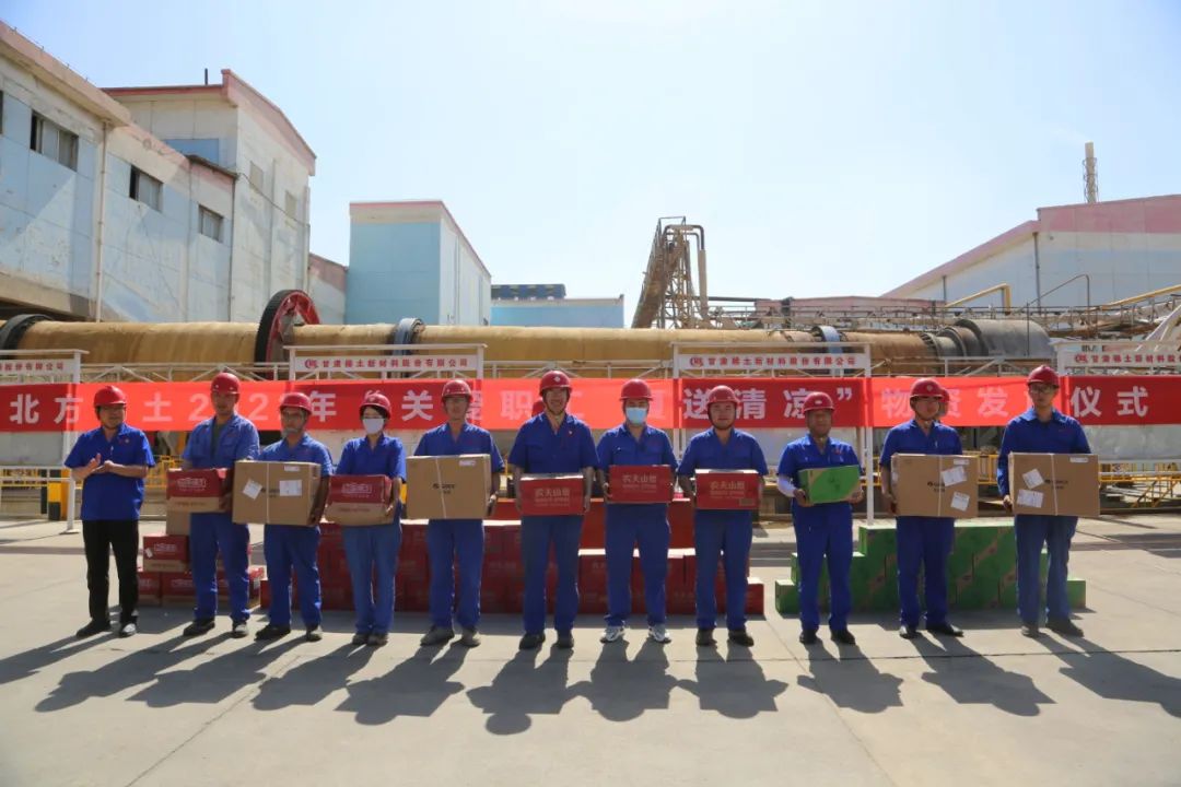 炎炎夏日送清凉,丝丝情谊沁人心。入夏以来,高温持续、酷暑难当,连续考验着奋战在一线的岗位职工们,也牵动着北方稀土党委的心。为进一步做好高温期间职工劳动保护和防暑降温工作,切实维护广大职工安全健康合法权益,北方稀土党委特地向公司赠予一批防暑降温饮品及物资,为公司广大一线职工送来了上级党委的关怀与问候。