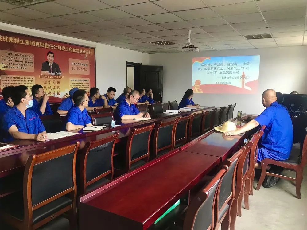 公司党委理论中心组成员以中心组学习及第一议题学习为抓手,各党支部以“三会一课”学习研讨及班前班后会等形式为依托,通过集中学习与个人自学相结合的形式,学法律法规、学党纪党规、学规章制度、学业务流程,通过学习教育引导广大党员干部职工真正学好制度,充分理解制度,自觉运用制度,不折不扣执行制度,同时在遵规守纪中树立务实苦干、担当尽责的优良作风,勇于担当、奋发有为,充分发挥甘肃稀土艰苦奋斗、自强不息的优秀企业精神,进一步提振全体党员干部职工的精气神,自觉做遵规守纪、履职尽责的模范,打造尽责高效的干部队伍。