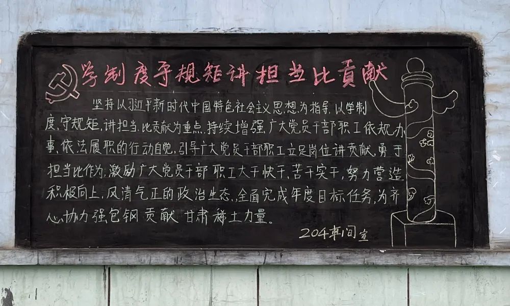 连日来,公司各单位部门结合当前生产经营和改革发展实际,按照工作职责,对照包钢(集团)、北方稀土相关制度,以制度修改和完善作为切入点,在全体党员干部职工中扎实开展“学制度、守规矩,讲担当、比贡献,营造积极向上、风清气正的政治生态”主题实践活动。