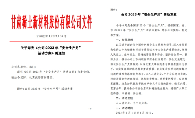6月份是全国第22个“安全生产月”,公司严格按照国家、省市及包钢集团、北方稀土有关决策部署,紧扣“人人讲安全、个个会应急”活动主题,以树牢安全发展理念,强化安全责任落实,增强全员安全意识,遏制安全事故发生为目标,聚焦重大事故隐患专项排查整治行动,组织开展形式多样、富有成效的系列活动,为公司安全生产形势持续稳定向好、奋力实现“双百”经营目标营造安全稳定的环境。
