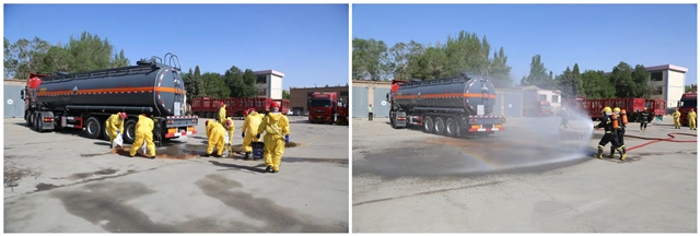 开展应急演练,提升技能水平。为切实把“人人讲安全、个个会应急”活动主题体现在演练成效上,6月15日、6月19日上午,公司联合白银市第一人民医院稀土分院、刘川工业园派出所在201车间、烧碱厂组织开展了液氨、液氯泄露事故专项应急预案演练;6月21日上午,公司联合靖远县交警大队、靖远县运管所、刘川工业园派出所、白银市第一人民医院稀土分院在万通公司开展危货运输车辆浓硫酸泄漏专项应急演练。通过上述演练,进一步检验应急救援队伍联合协作实战效能,全面提升危险化学品突发事故应急救援实战能力,筑牢安全生产防线。